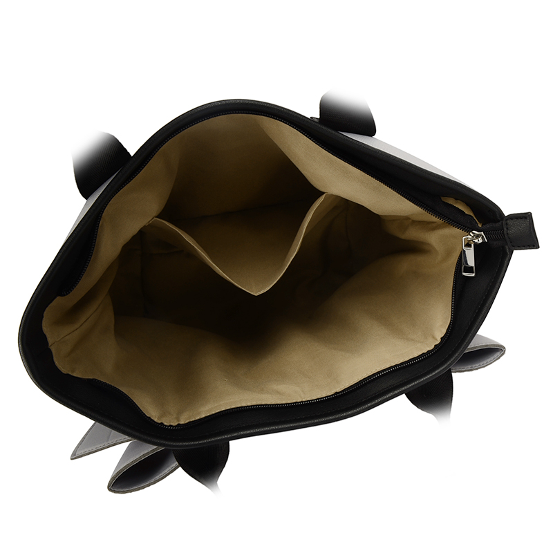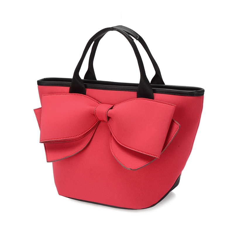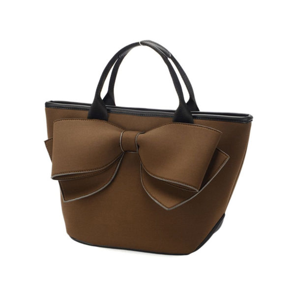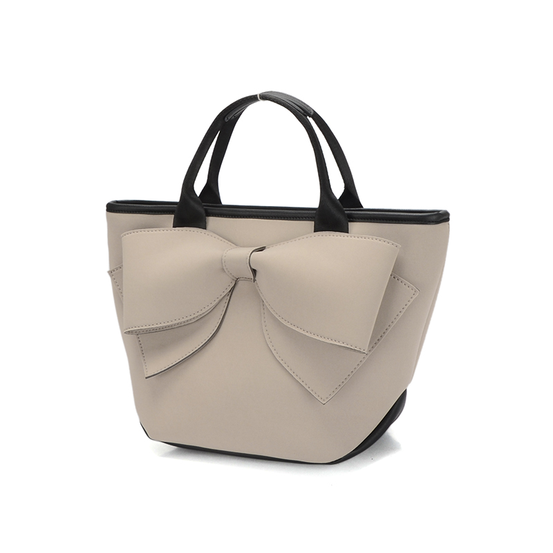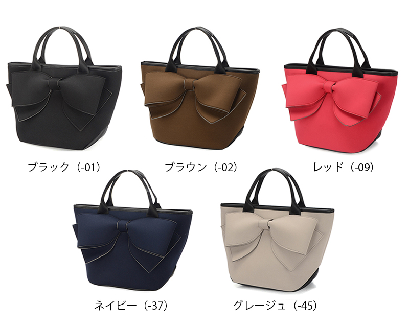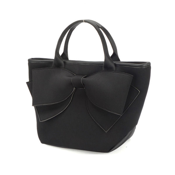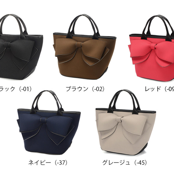 大きなリボンデザインが印象的な手提げバッグ。