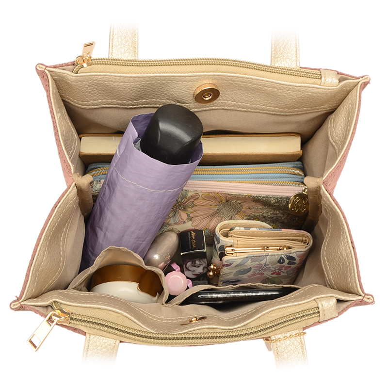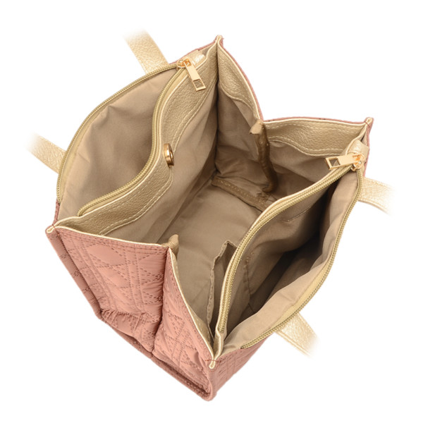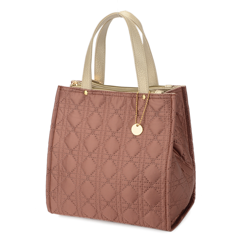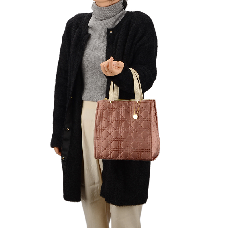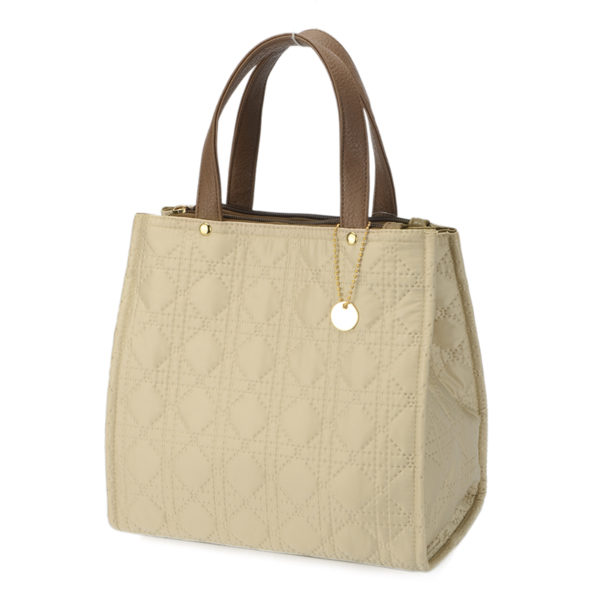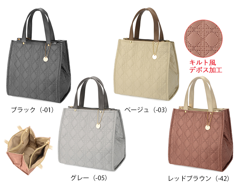 デポス加工のキル刺繍風が高見えするハンドバッグ。