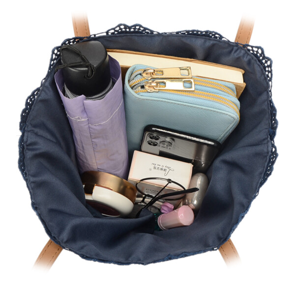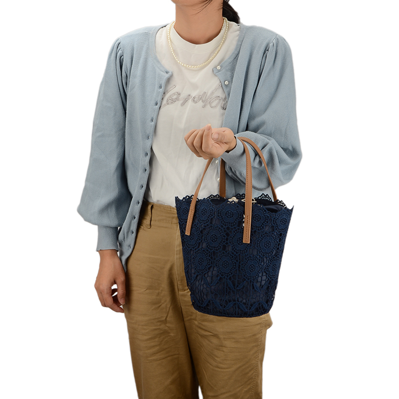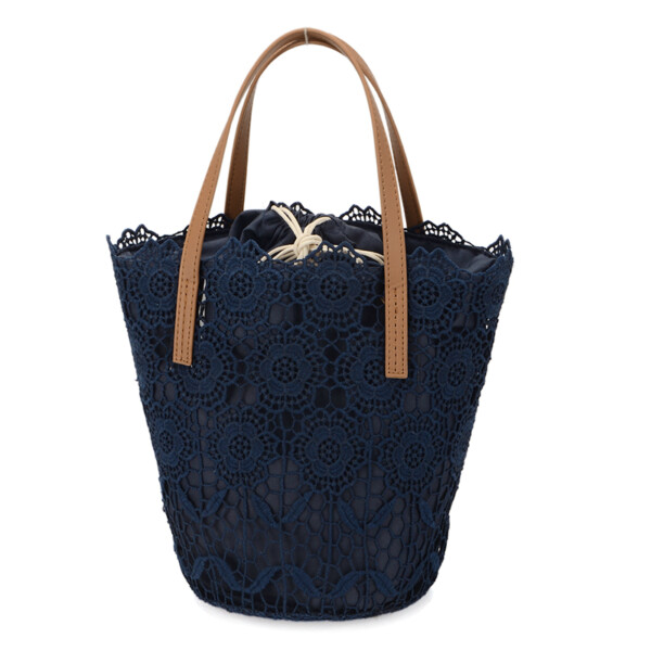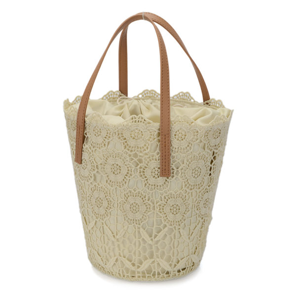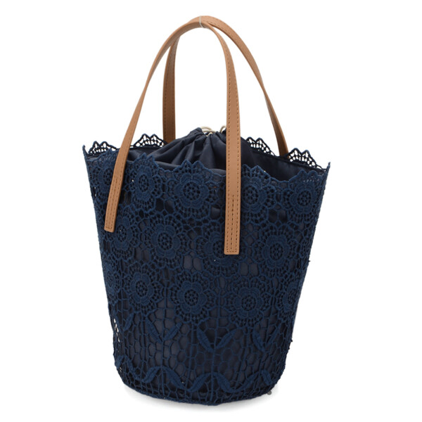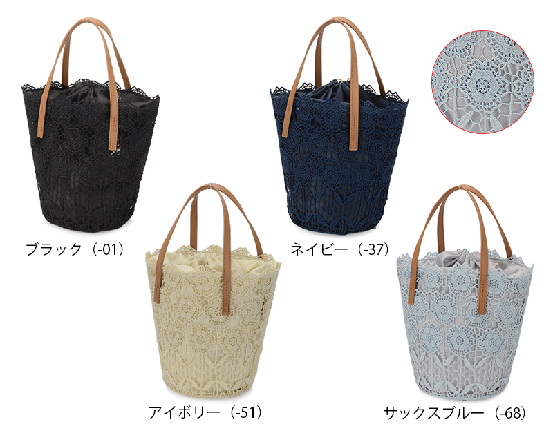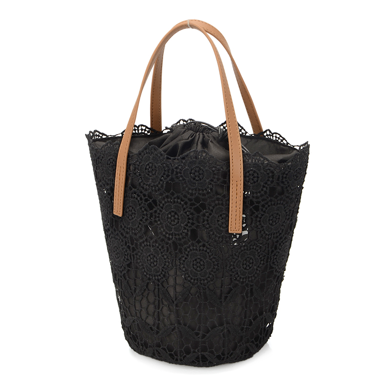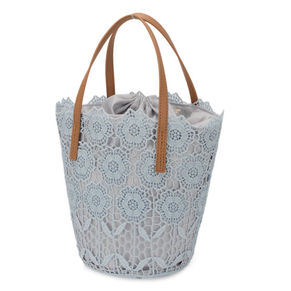 上品な総レース風の巾着式バケツ型手提げバッグ。